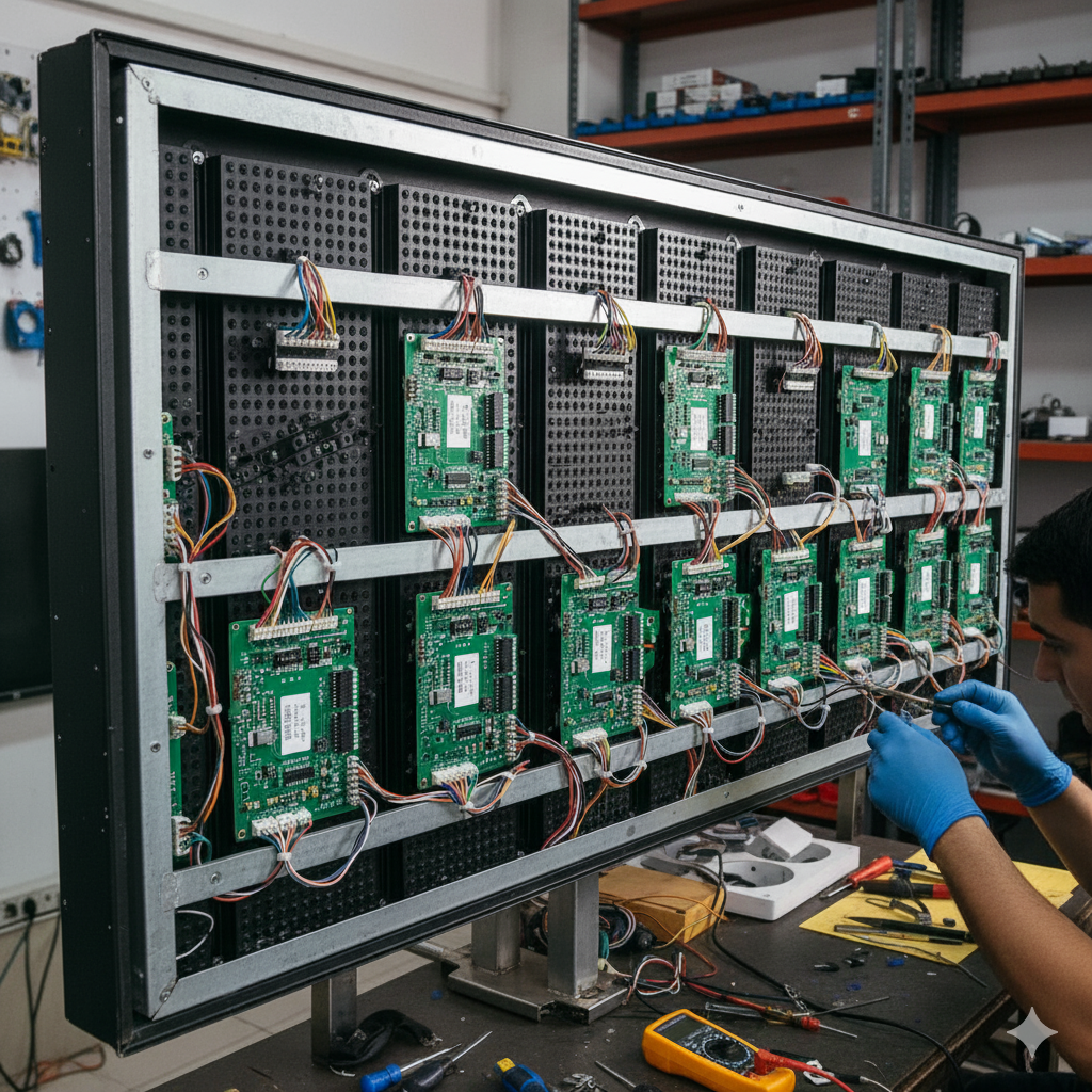 Profesyonel LED tabela tamiri ve arıza tespiti hizmeti sunuyoruz. Her türlü kayar yazı ve LED ekran sorunlarınızda hızlı ve garantili onarım çözümleriyle yanınızdayız. LED modül değişimi, güç kaynağı onarımı ve periyodik bakım hizmetleriyle LED tabelalarınızı ilk günkü parlaklığına kavuşturuyoruz.